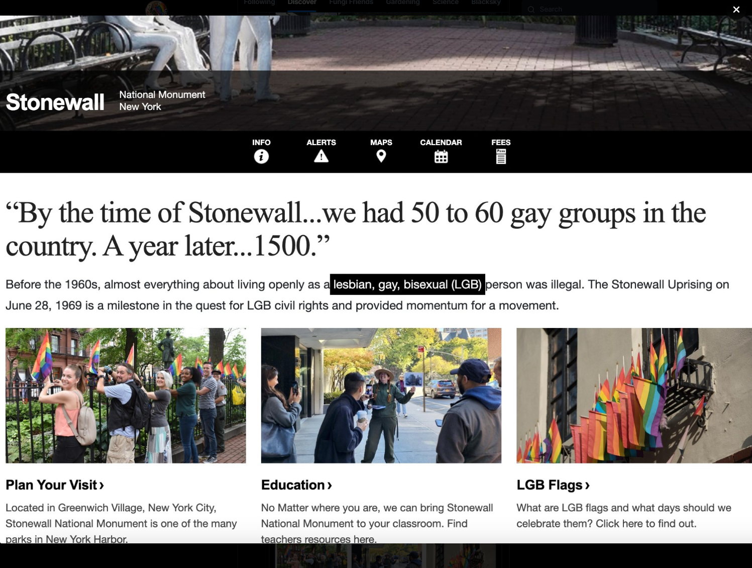 #10 The National Park Service has removed "T" and all mention of transgender people from the Stonewall National Monument.
